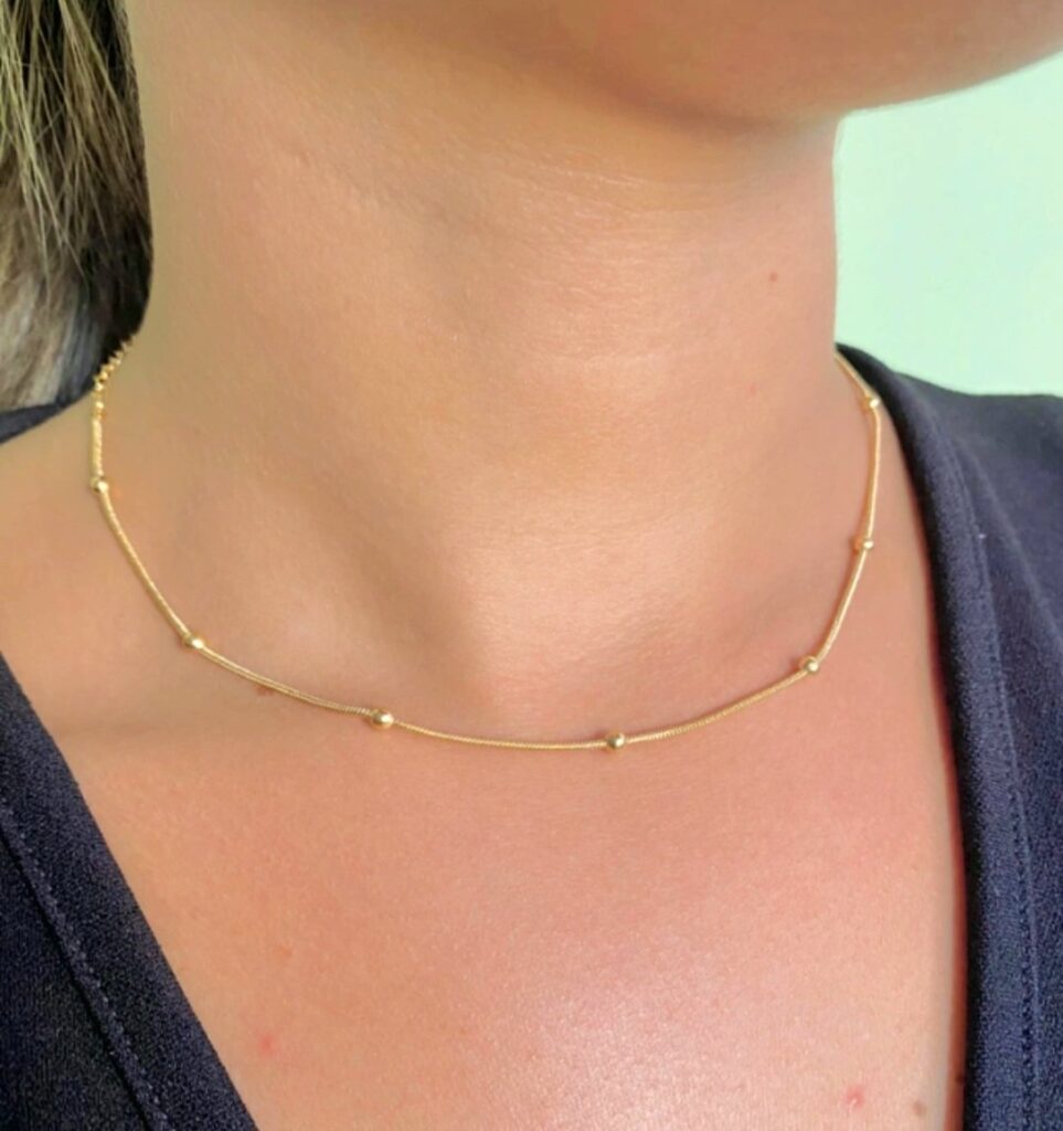 Esgotado!Choker minimalista bolinhas lisas ouro