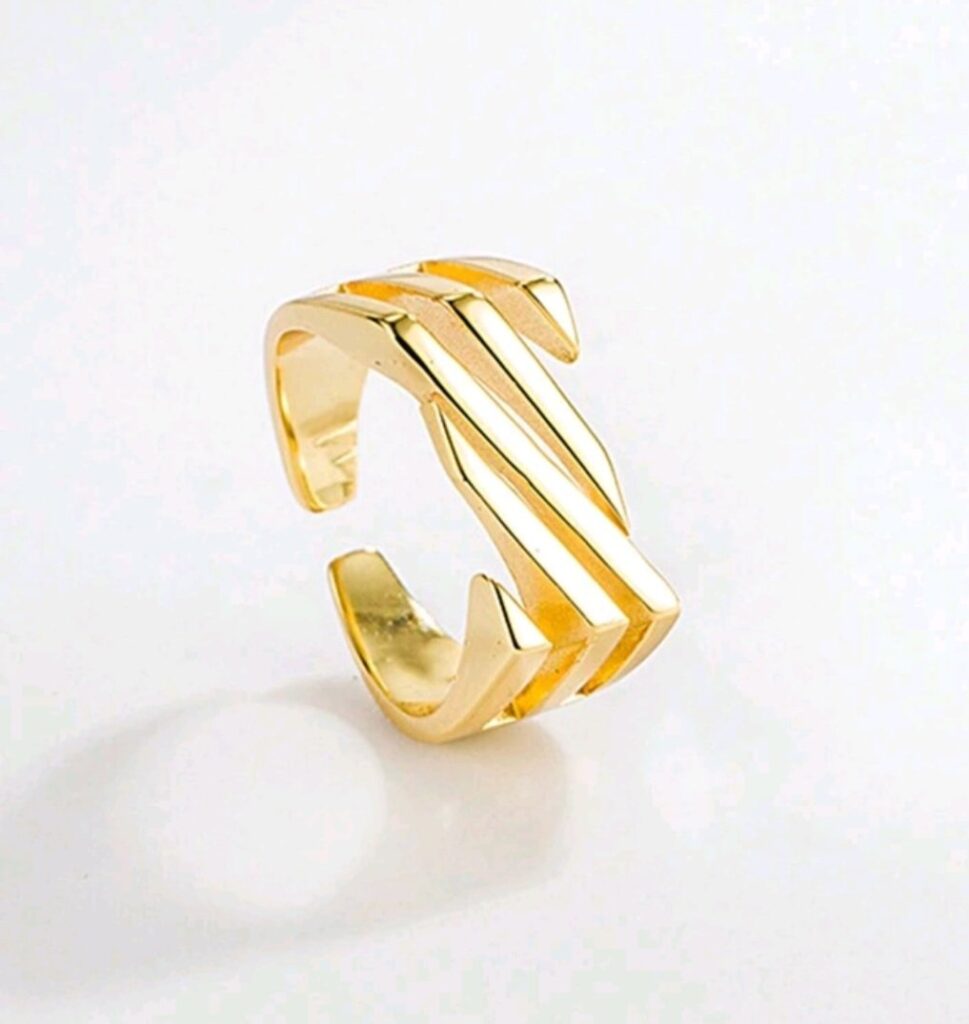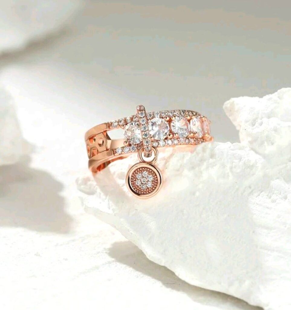 Esgotado!Anel Retangular Zircônias Baguete Rosé